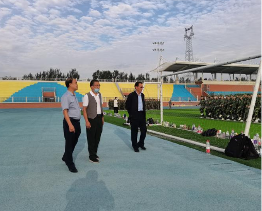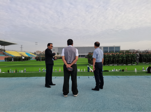 9月21日上午,必赢76net线路官网田径场上,必赢76net线路官网2022级新生军训如火如荼地进行着。必赢76net线路官网朱昌杰院长陪同学校党委朱德顺书记、学生处孙增响处长亲切看望慰问我院全体受训学生和教官。