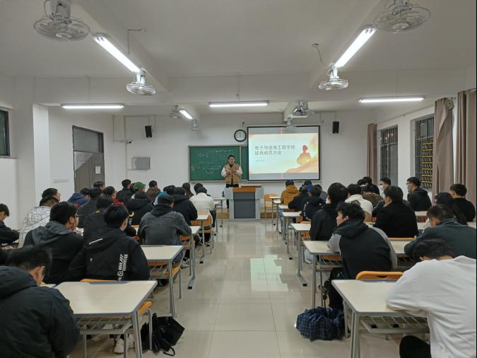 会议共有两个议程。第一项议程由侯绪芳老师作动员讲话,侯老师将身边人入伍的故事分享给同学们,让同学们对部队有了一定了解。在会议上他谈到了学生们的入伍情怀,谈到了新时代青年应有的抱负。大学生是祖国未来的栋梁,应该积极响应党和政府的征兵号召,把个人理想抱负融入强军梦,中国梦。然后侯老师详细的为同学们讲解了入伍优待政策,解释了同学们对入伍的一些相关问题并且介绍了入伍条件。