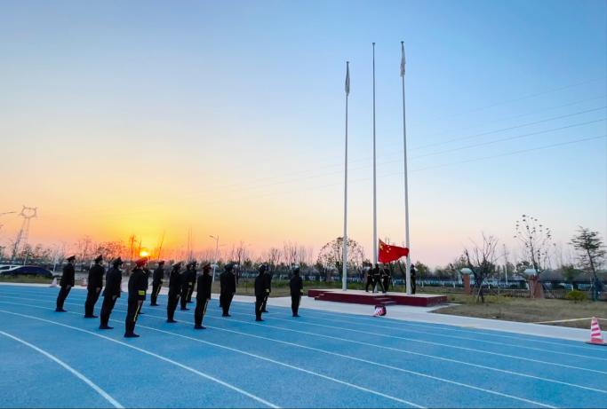升旗仪式开始时,国旗班的旗手们着装整齐,迈着矫健的步伐,护着鲜艳的五星红旗入场举行升旗仪式。伴着《义勇军进行曲》的响起,全体师生行注目礼,庄严肃穆。