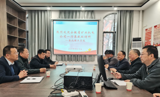 2023年3月16日上午,安徽省矿业机电装备有限责任公司李凤荣党委书记、董事长一行,来必赢官网进行校企合作调研,进一步落实校企合作。汪建利副校长、朱昌杰院长及相关专业负责人参与本次调研。