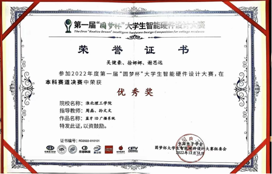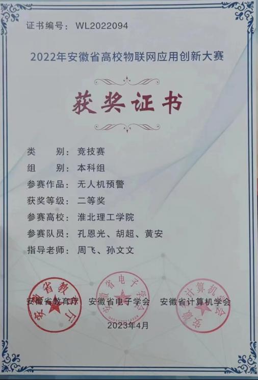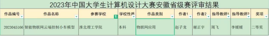 必赢76net线路官网积极推进教学改革创新,用“以赛促教”的教学模式努力培养应用型人才,在“2022年中国大学生计算机设计大赛”中获得了省级二等奖、国家级三等奖;在“2022年圆梦杯硬件设计大赛”中获得省级三等奖、国家级优秀奖;在“2022年全国大学生英语竞赛C类”中获得国家级三等奖;在“2022年大学生创新创业比赛”中,共有26个项目获得省级立项;在“2023年第四届全国大学生算法设计与编程挑战赛春季赛”中获得国家级优秀奖;在“2023年安徽省高校物联网应用创新大赛”中,获得了一个一等奖、三个二等奖、两个三等奖;在“2023年中国大学生计算机设计大赛”中荣获省级二等奖;在“2023圆梦杯全国大学生智能硬件设计大赛”中省级三等奖;在“2023年淮北市职业技能大赛人工智能训练师赛”中获得一等奖28人,二等奖42人,三等奖42人;在2023年第十届“挑战杯·华安证券”安徽省大学生课外学术科技赛中获得了两个省级三等奖。