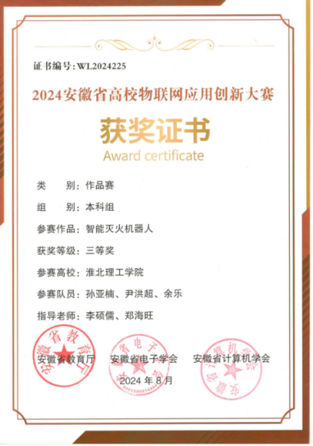 必赢官网参赛队伍在智能车(智联驾驶)、无人机预警、嵌入式A与C、物联网感知以及作品赛六大赛道中奋力角逐,展现了团队协作与拼搏精神。经过激烈的比拼,我们取得了较好的成绩:智能车(智联驾驶)赛道荣获省级二等奖1项、三等奖2项;无人机预警赛道省级二等奖1项;嵌入式A赛道省级二等奖1项、三等奖2项;嵌入式C赛道获得省级三等奖1项;物联网感知与作品赛赛道则各获省级三等奖1项。这些荣誉不仅是对参赛师生辛勤付出的肯定,更是对我们学院科技创新实力的有力证明。部分获奖证书如下: