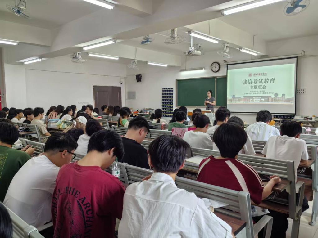 班会伊始,各辅导员老师通过多媒体展示近年来高校考试作弊的典型案例,以案说法,深入剖析作弊行为的严重后果。案例中,有的学生因作弊被取消学位授予资格,有的在求职时因诚信记录不佳被拒之门外,还有的因团伙作弊被追究法律责任。这些触目惊心的案例让同学们真切感受到作弊行为对个人学业、前途乃至一生的深远影响,警示大家切勿心存侥幸,以身试法。
