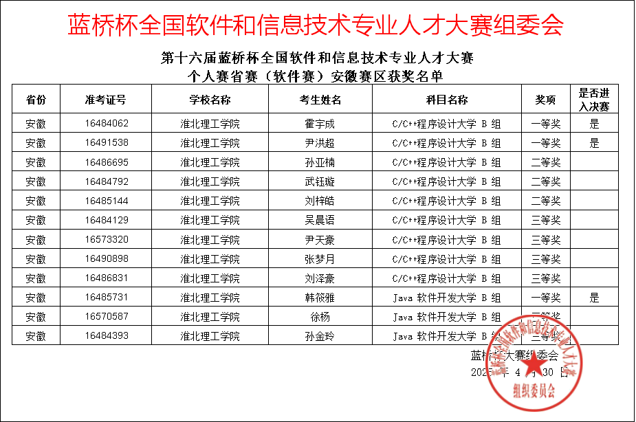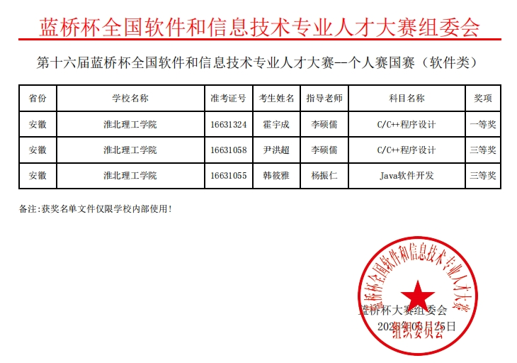 必赢官网必赢76net线路官网学子凭借扎实专业功底在第十六届“蓝桥杯”全国软件和信息技术专业人才大赛全国总决赛中,获国家一等奖1项、国家二等奖1项、国家三等奖2项;在第十六届“蓝桥杯”全国软件和信息技术专业人才大赛安徽赛区,获省级一等奖4项、省级二等奖14项、省级三等奖13项。