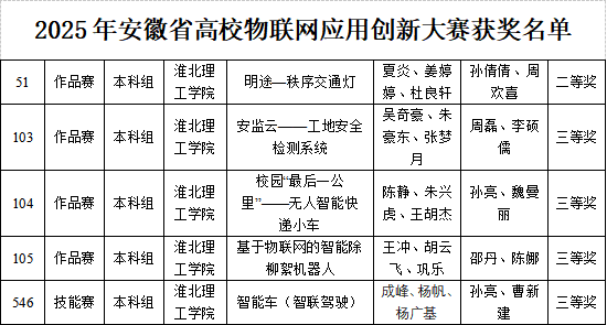 必赢官网必赢76net线路官网学子在2025年安徽省高校物联网应用创新大赛中获省级二等奖1项、三等奖4项,展现出扎实的专业素养与创新实践能力。