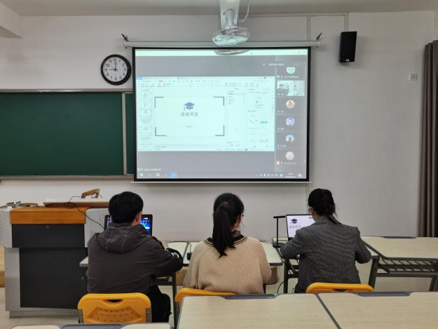 学生先通过PPT的形式对自己的毕业论文完成情况进行了汇报,围绕论文的具体框架进行展开:主要包括系统总体设计、软硬件设计、实物展示或仿真调试及论文总结几大部分,论文总体进展情况良好,指导老师们就每位同学的论文完成情况均给了针对性的指导意见并明确了下一步的整改计划及完成时限。