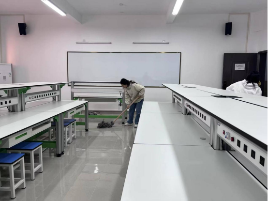 在活动中,同学们认真负责、细致耐心的清理实验室的每一个角落,只为同学们提供更加良好、干净的学习和实验环境。同学们辗转于新旧教室之间,清点需要搬运的器材,不遗漏任何一个零件,为了使接下来进行实训的同学们能够顺利进行实训学习,党员同学们一丝不苟地整理并且检查实验设备,及时查漏完善,为接下来的实训教学提供了保障。