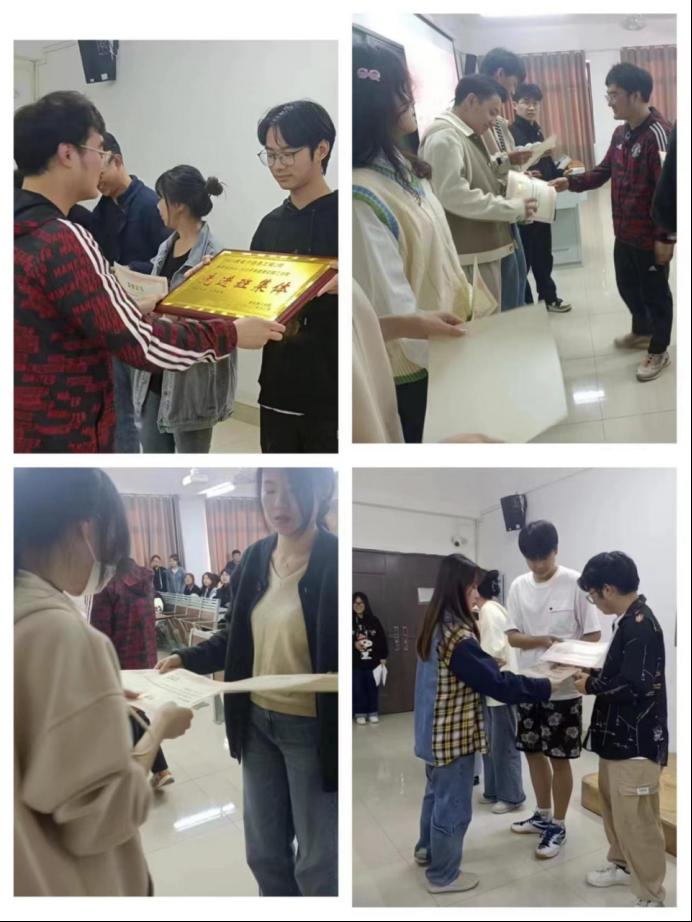 我院上学期举办的普法修德演讲比赛旨在普及法律知识,提高社会法律素养,弘扬社会主义核心价值观,引领人们健康向上的生活方式。比赛中,选手们在激烈角逐中表现出色。由杨雯雯老师为这些同学进行颁奖。