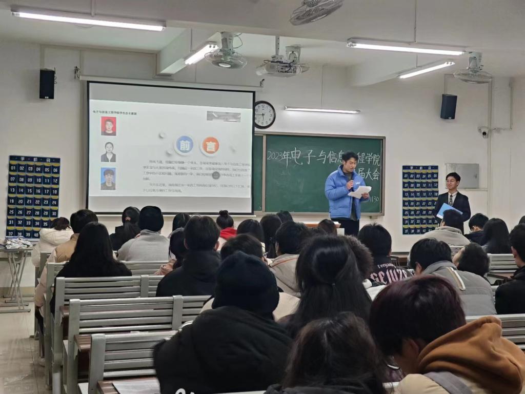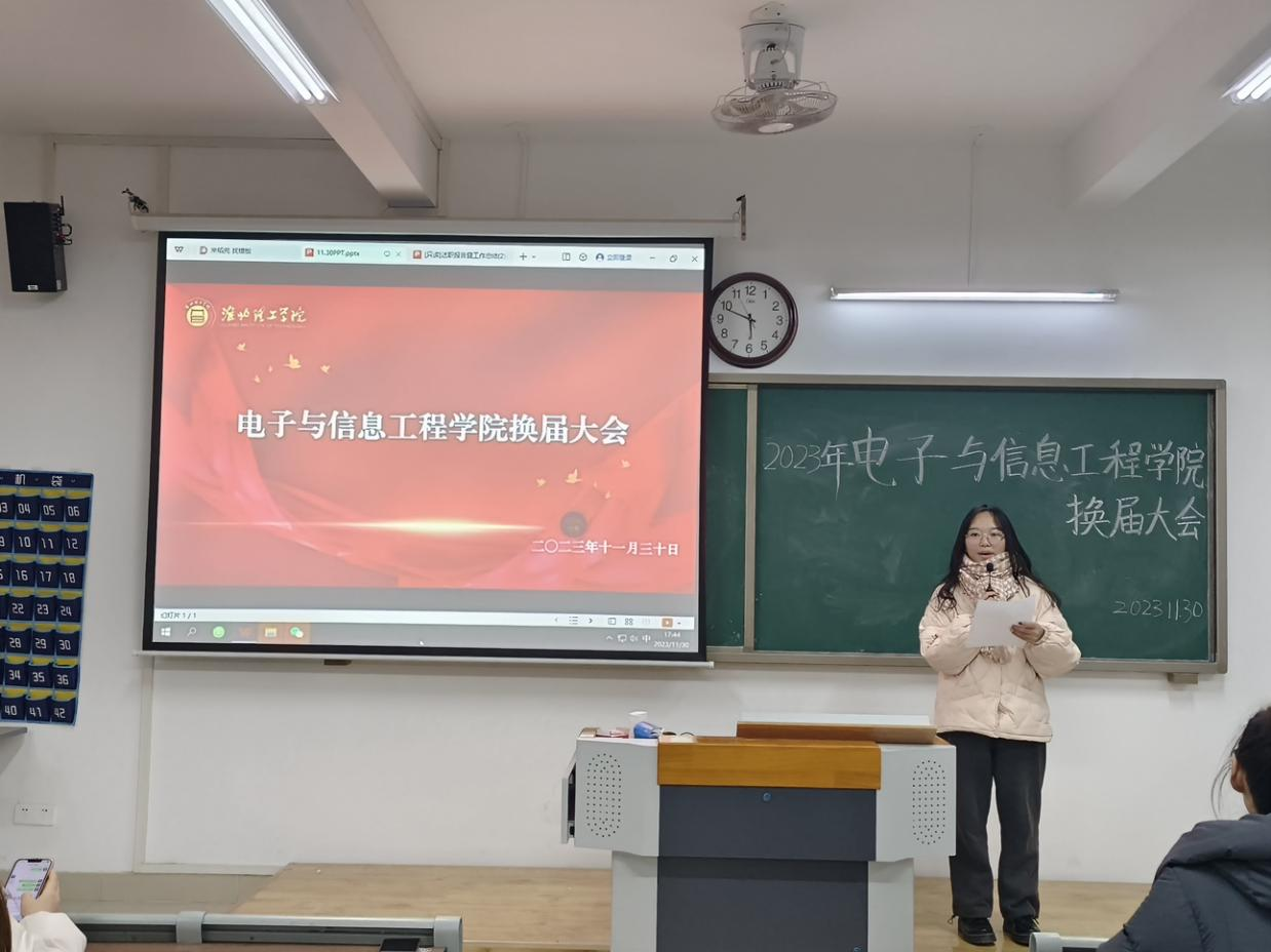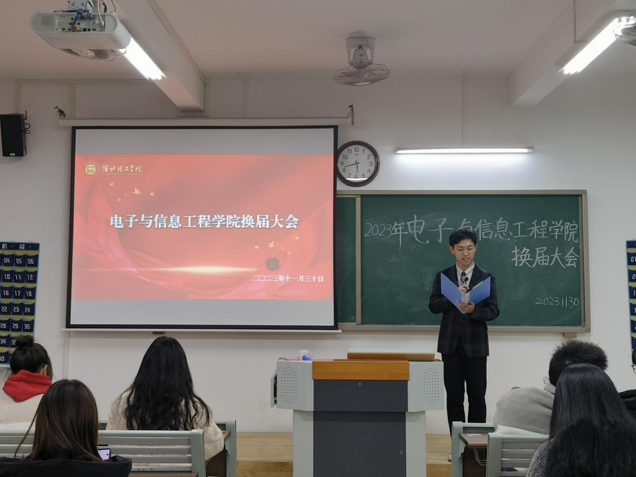2023年11月29日17:30,必赢76net线路官网学生会换届大会在第一教学楼405教室举行。电信学院学生会主席梅毅松、副主席朱昊、副主席陈可怡、新主席徐娜娜同学以及学生会新老干部出席本次会议。本次换届大会的主持人是宇文昕羽。