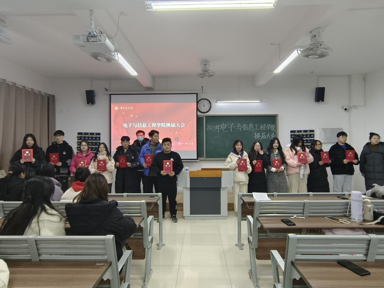 最后,电信学院辅导员杨雯雯老师、孙浩老师为上一届圆满完成工作的部长颁发聘书。老师们表示了对上一届学生会工作的肯定和对下一届学生会同学的勉励,希望同学们能秉承学生会全心全意为同学服务的宗旨扎实工作,用行动来证明自己的能力,来为学院添彩。